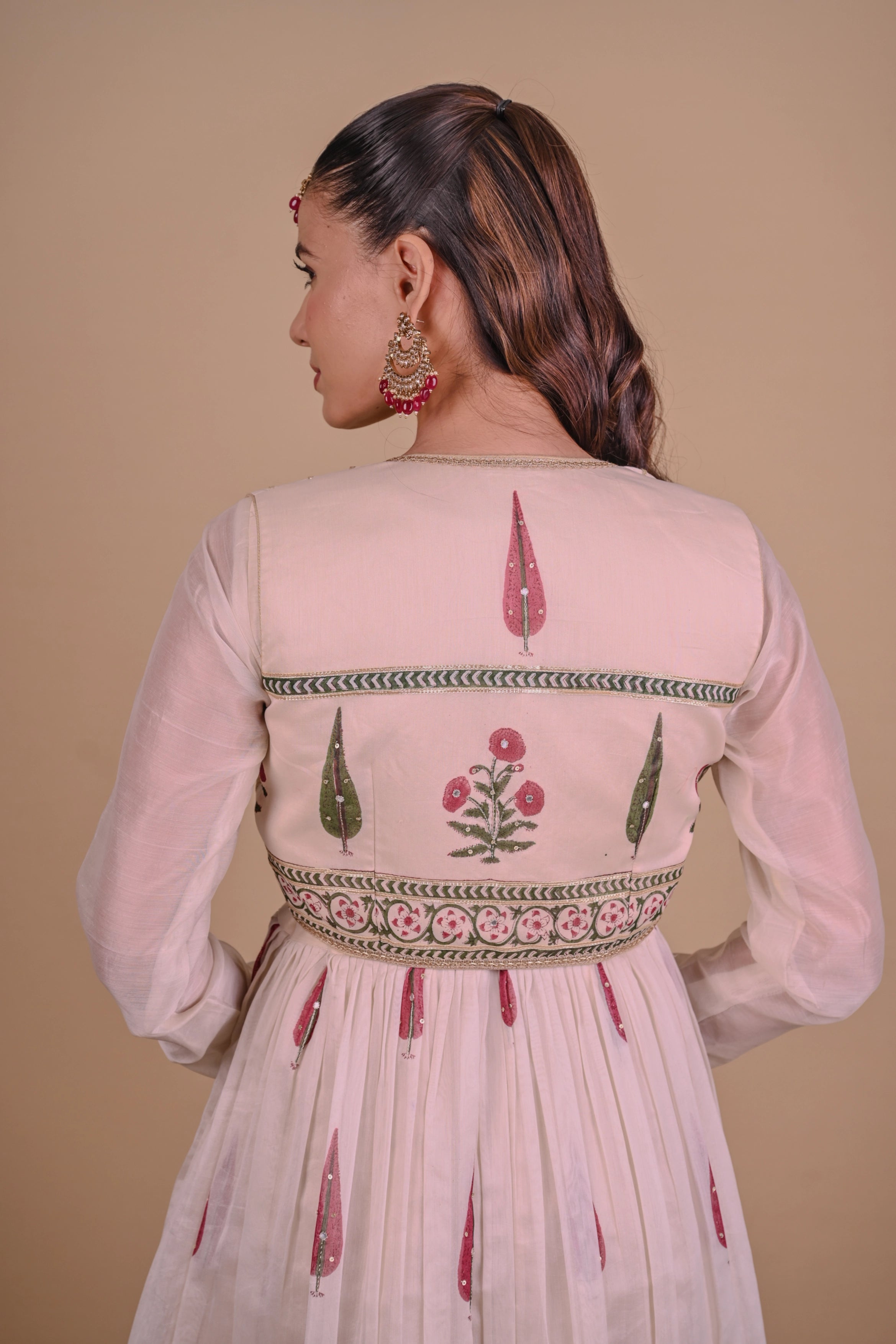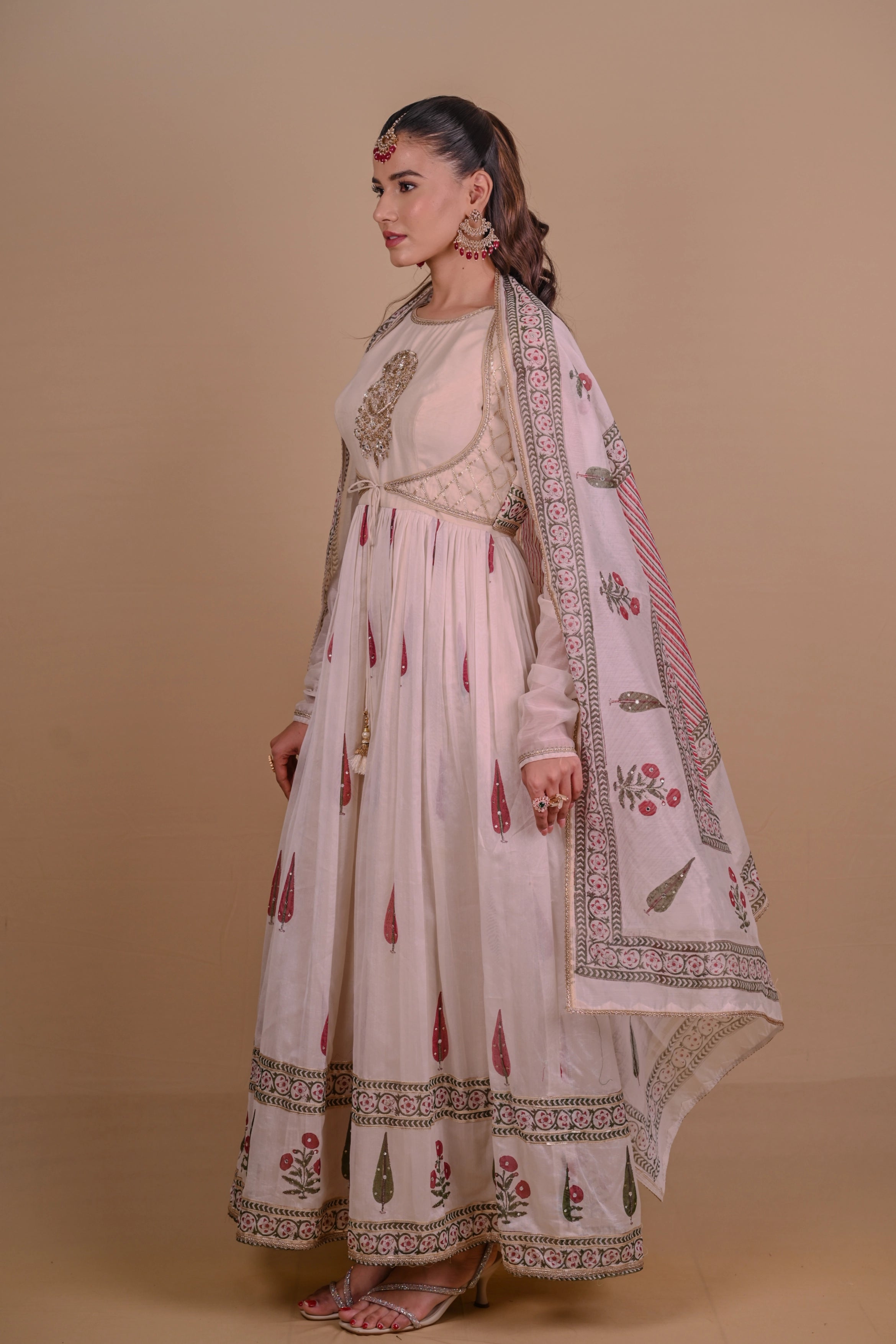 Ivory block printed Chanderi Anarkali